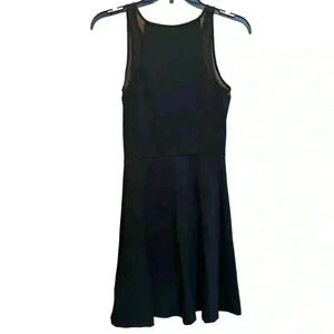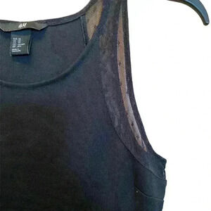 H&M skater dress. Black knit fit and flare. High crew neck. Sleeveless. Sleeveless opening trimmed in black lace for accent and interest. Darts in bodice bust. No pills, rips or snags. No pockets. Color: Black. Size: Small. 74% Polyester, 21% viscose, 5% elastane. Measurements laying flat: armpit to armpit 14.5”. Shoulder to waist 16”. Shoulder to hem 34”. Waist to hem 18.5”. Waist 11.75”. Pet free smoke free environment. FINAL MARKDOWN