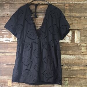 H&M Black Eyelet V-Neck Swimsuit Coverup