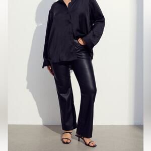 These black pants from H&M are crafted from vegan faux leather in a pull-on design with interior stretch waistband and flared legs.