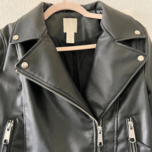 H&M Black Faux Leather Moto Biker Jacket Women’s Small Edgy Zip Front