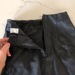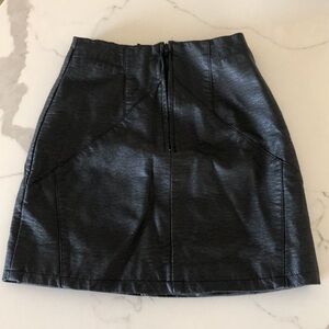 Super cute and perfect for fall faux leather H&M skirt. Zipper in the back and button closure. Has a small mark as seen in photo otherwise in great condition. Size 2