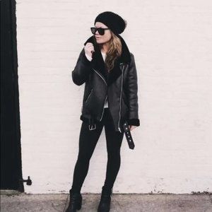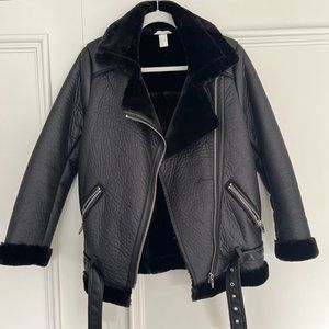 H&M Women’s black faux leather/shearling biker jacket. Oversized fit. Excellent used condition - worn only a couple of times. Size 6
