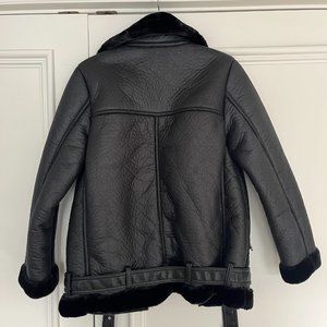 H&M Black Faux Leather/Shearling Biker Jacket - Size 6