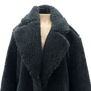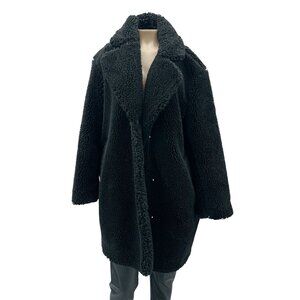 H&M Black Faux Teddy Shearling Coat Longline Jacket Cozy Warm Winter Women XS