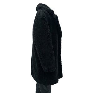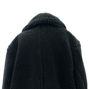 Tags: black faux shearling coat, H&M women's coat, longline winter jacket, black warm coat, XS black coat, shearling style coat, winter outerwear, faux fur jacket, cozy winter coat, women's black jacket, snap button coat, H&M long coat, acrylic polyester coat