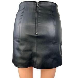 H&M Black Faux Vegan Coated Leather Bodycon Zipper Straight Pencil Mini Skirt 0
