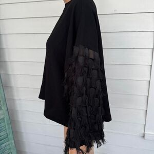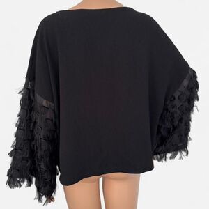 H&M Black Feathered Fringe Sleeve Black Blouse Boxy Top 14