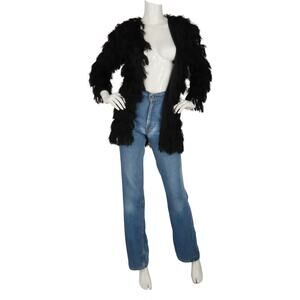 H&M Black Flapper Fuzzy Faux Fur Fringed Shaggy Knit Cardigan Sweater Jacket