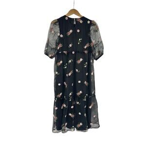 H&M Black Floral Appliqué Mesh Puff Sleeve Midi Dress Fairy Whismigoth Womens XS
