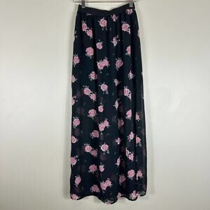H&M Black Floral Chiffon Sheer High Waisted Maxi Skirt