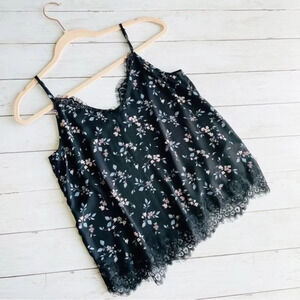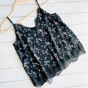 H&M Black Floral Dainty Cami Top Size 8