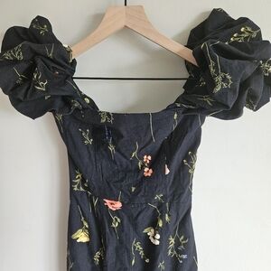 H&M Black Floral Linen Blend Off The Shoulder Midi Dress NWT