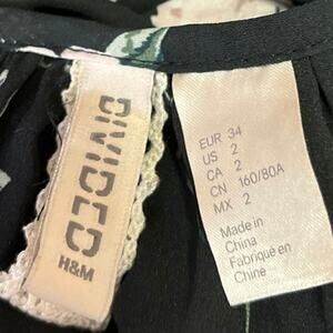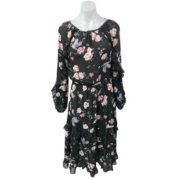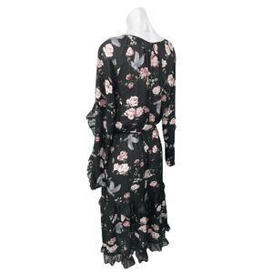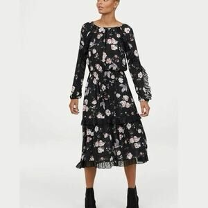 H&M Black Floral Print Ruffle Long Sleeve Tiered Midi Blouson A-Line Dress 2