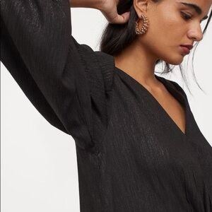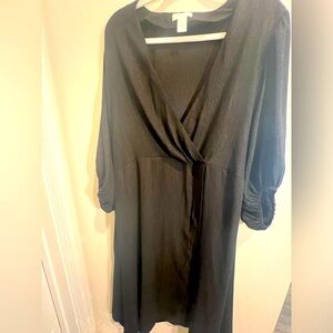 Black Dress, Flowy with such fun sleeves! Subtle shimmer throughout the dress. Size L.