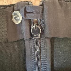 black mini skirt, gold button detail, A-line skirt, double-breasted, high-rise, tailored, classic style, structured, elegant, sleek