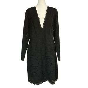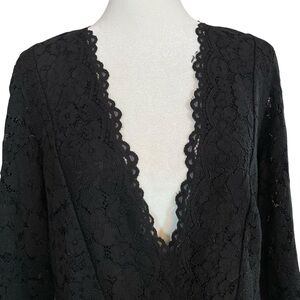 H&M Black Lace Bodycon Deep V-neck Mini Dress Long Sleeves (Size 14)