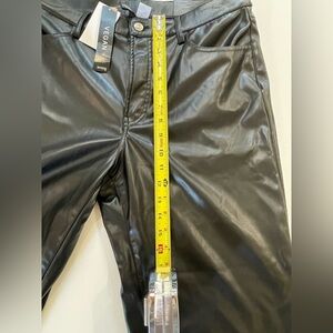 Brand new with tag vegan leather pants. There are a couple imprint marks on waistband from the store's hangers (see pic) If you wear a belt or a shirt that covers waistband it will cover them.