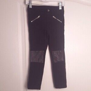 Black leggings with panels on knee that look like faux leather. Zipper detail. by H&M size 4-5 years. Like New