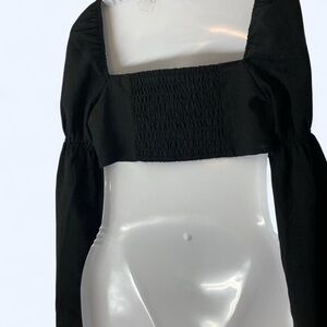 H&M Black Long Sleeve Crop Blouse with Keyhole Tie Front S