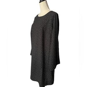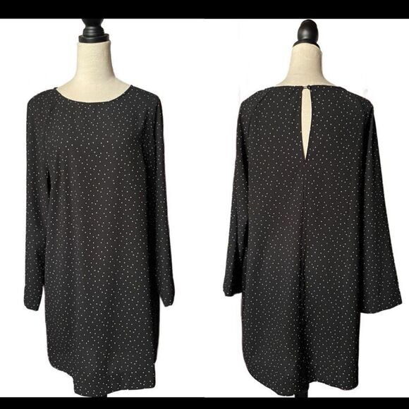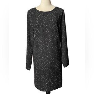 H&M Black Long Sleeve Shift Dress w/Small White Polka Dots & Keyhole (LG)