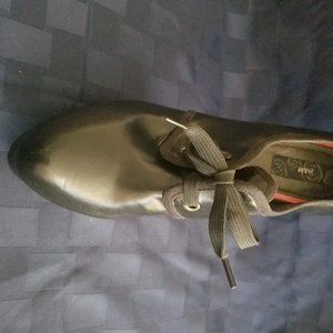 Super cute black heel with two grommet lace up, very gently used, women's size 9 by H&M.