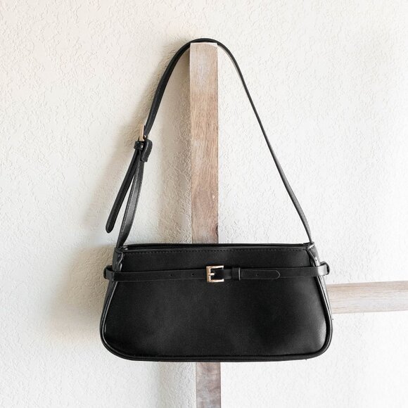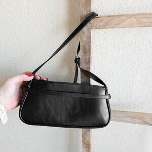 H&M black shoulder bag, mini baguette bag, belt detail purse, 90s Y2K shoulder bag, black handbag with gold zipper, minimalist purse, adjustable strap bag, vegan leather purse, top zip bag, small black purse, structured shoulder bag #HMStyle #MiniBag #BlackShoulderBag #VeganLeather #GoldHardware #BaguetteBag #MinimalistStyle #TrendyAccessories #ClosetStaple #90sInspired #EverydayBag #HMLover #PreLoved