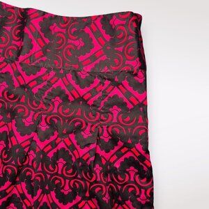 H&M Black Pink Red A Line Mini Skirt Retro Patterned Cotton Mod Style Size 6