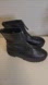 Sleek black boots with a bold platform heel. Features a front zipper for easy wear.