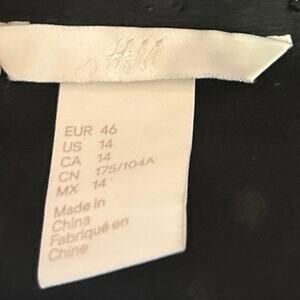 H&M Black Polka Swiss Dot Sheer Tie Neck Long Sleeve Drop Shoulder Button Up Blouse Top Size 14