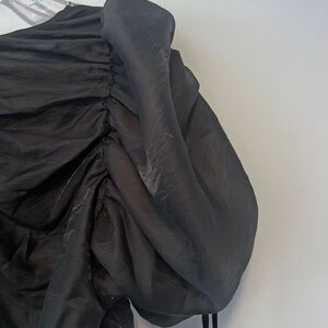 H&M Black Poof Sleeve Ruched Front, Back Sleeve Full Zip back Goth Romantic XL