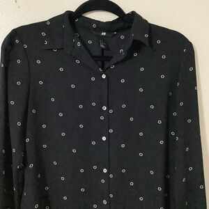 H&M Black Preppy Twee Retro Back to School Lightweight Button Down Shirt Size 4