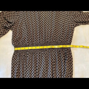 NWT black and brown print dress in size 8. Long sleeve, shirred elastic waist with button neck back closure. Approximate measurements are in photos. Viscose fabric is machine washable. Perfect condition from smoke free and pet free home.
