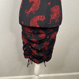 H&M Black & Red Chinese Dragon 90s Y2K Short Sleeve Midi Bodycon Dress with lot's of stretch