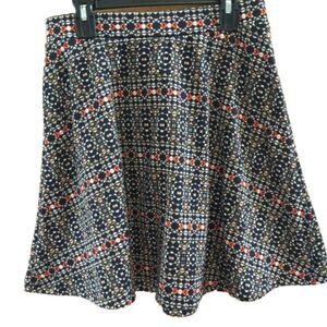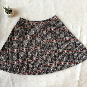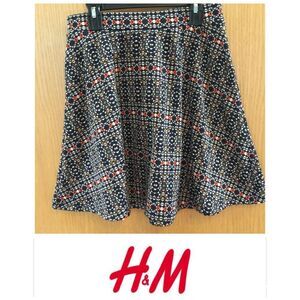 H&M Black Red Geometric Boho Knit School Girl A-Line Flare Skirt S