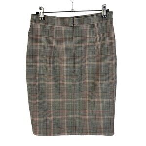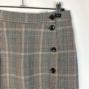 H&M Black & Red Houndstooth Plaid Button Side Knee Length Pencil Skirt 4