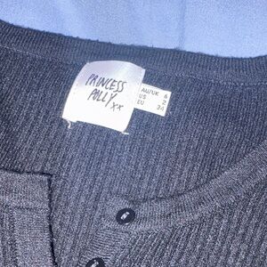 Sweater Material black ribbed top with button-up front. Princess Polly.
