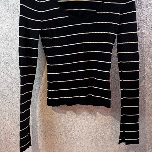 Chic ribbed knit top by H&M. Features classic black with white accents. Ideal for versatile styling.