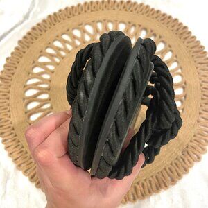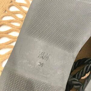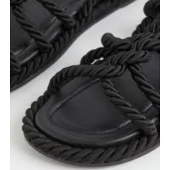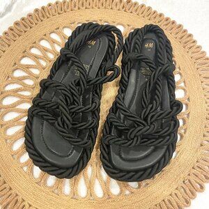 These are gently used H&M Black Robe Twisted Flat Open Toe Sandals Size EU 36/ US 5. In very good condition. Minor dirt on front rope on toes. See all pics for condition.