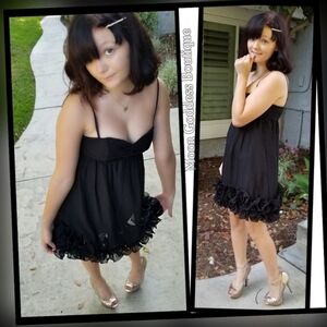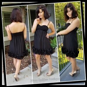 H&M ✦ Black Ruffle Hem Mini Dress ✦ Cocktail Prom Formal Strapless Sz 4 EUC