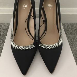 H&M Black Satin Rhinestone embellished heels