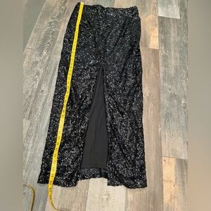 Make a statement at your next event with this stunning black sequin long maxi skirt from H&M. This skirt is all black sequin. Fully lined