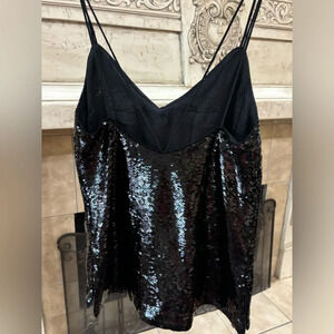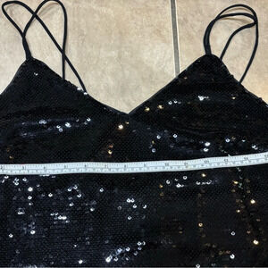 H&M Black Sequin Spaghetti Strap Top Blouse Size Small