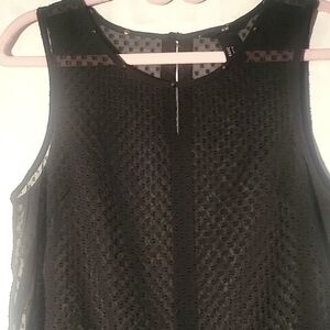 H&M, Sleevless, Stud design around neck, loose peplum, Black. Sheer, Textured