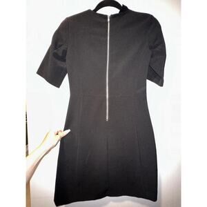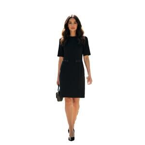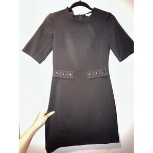 H&M Black Short Sleeve Sheath Shift Dress Button Details Work Back Zipper Size 2