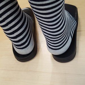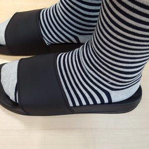 H&M Black Slides Mens SZ 9.5 -10.5 ( free striped socks )