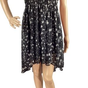 H&M Black Star Print Sleeveless High-Low Mini Dress Size 2