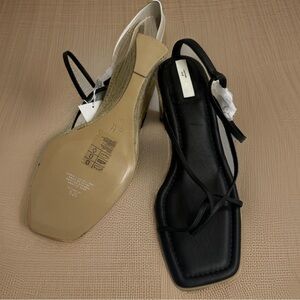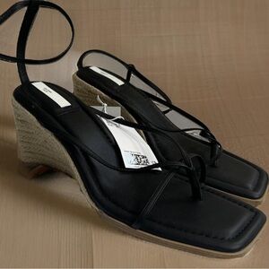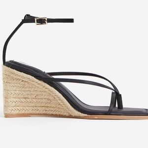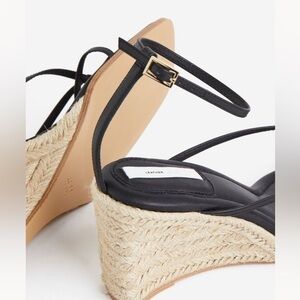 H&M Black Strappy Leather Espadrille Wedge in Black Size 10/41 NWT