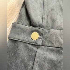 HM Black Suede Size 2 Dress in excellent condition. Has shiny gold buttons that minor scratches ( see photos ). Measures pit to pit: 14” and Shoulder to hem 32”