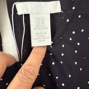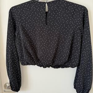 H&M Black Sz. XS Black White Polka Dot Long Sleeve Crop Bubble Blouse Crop