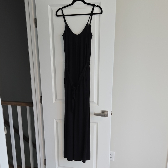 Stylish black jumpsuit with textured fabric. Ideal for versatile wear.